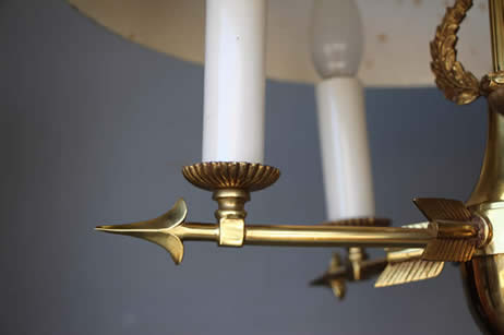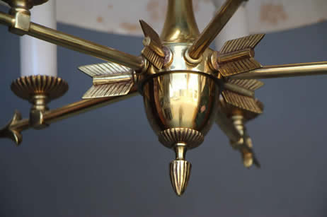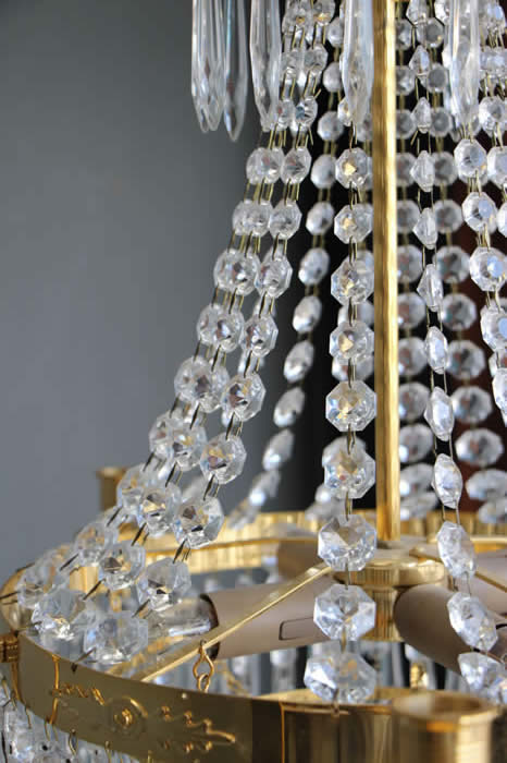 A long brass pendulum is housed