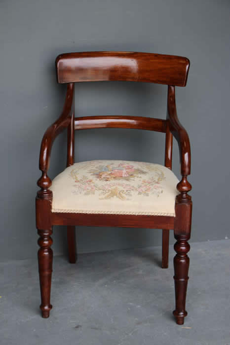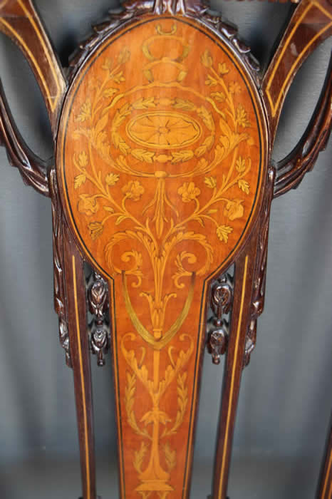 The well carved wooden chair frames with traditional pegged joint construction as used in the 18th century tradition. The four peg securing of the legs to the frame was traditional to George Jacob.