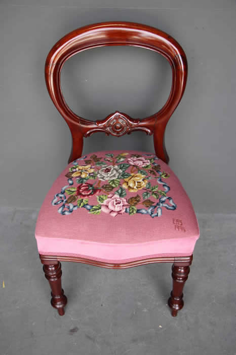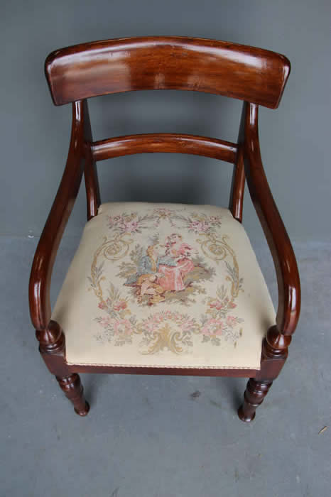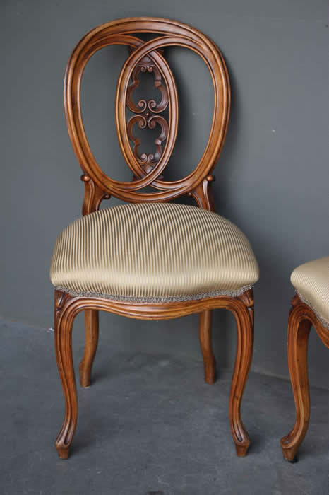 The seats in duck egg blue silk but unfortunately with minor water marks to fabric due to a faulty shipping container seal. All seats were reupholstered around 10 year sago and can be used as is or simply covered with loose tie back fabric.