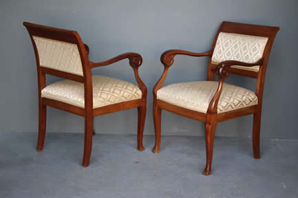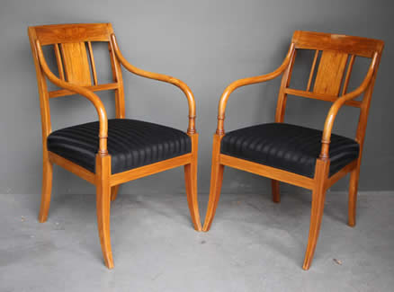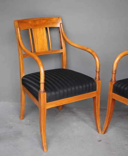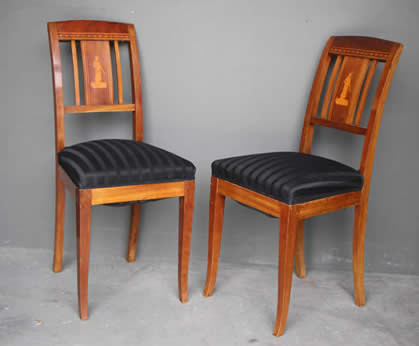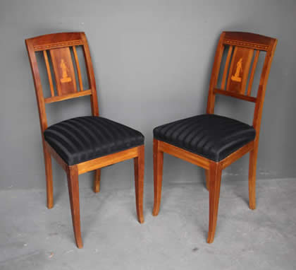 in the Empire Biedermeier manner with satinwood string inlay. The drop on seats