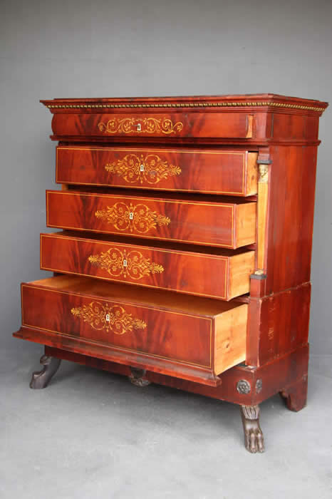 Antique Gustavian Swedish 18th century chest of drawers in mahogany with brass mounts & inlay Stockholm circa 1780
