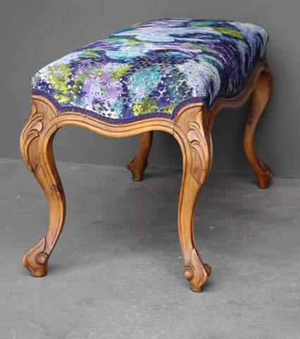 The four matching chairs are original to the table and ideal for the salon. Nice and sturdy they also retain their peach coloured vintage velvet and have springs under the seats for comfort.