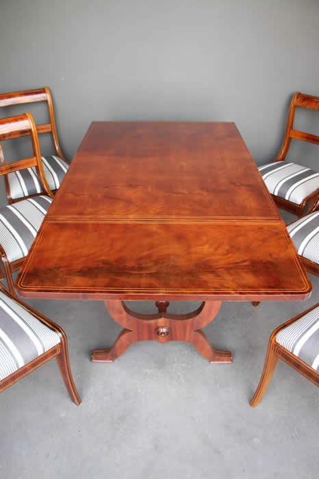 The English Regency period heavily influenced the continental late Empire and Biedermeier era and this elegant French table shows a superb simplicity of design. A value point is that this table has all its original polished finish.