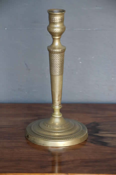 Bronze roman harpist candlestick with weighted square base. Regency period |