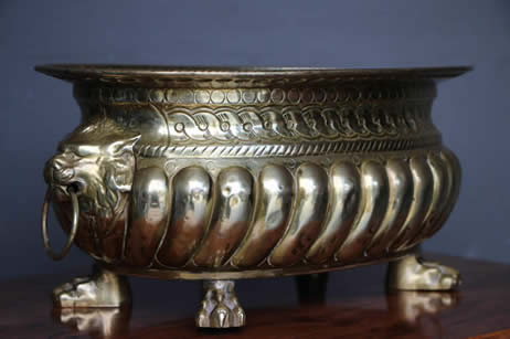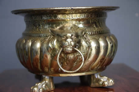 jardinier planter bowl with repousse work and engraved details on lions paw
