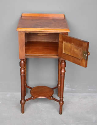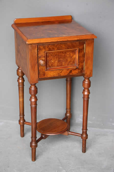 Antique French walnut bedside table burl walnut panel compartment on turned legs Napoleon III 1860 |