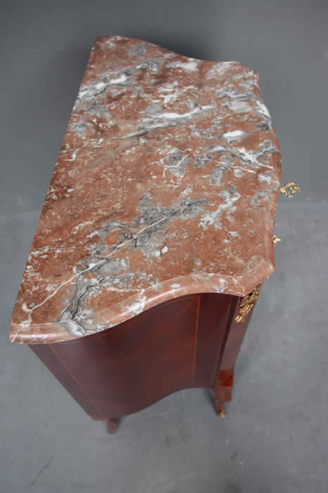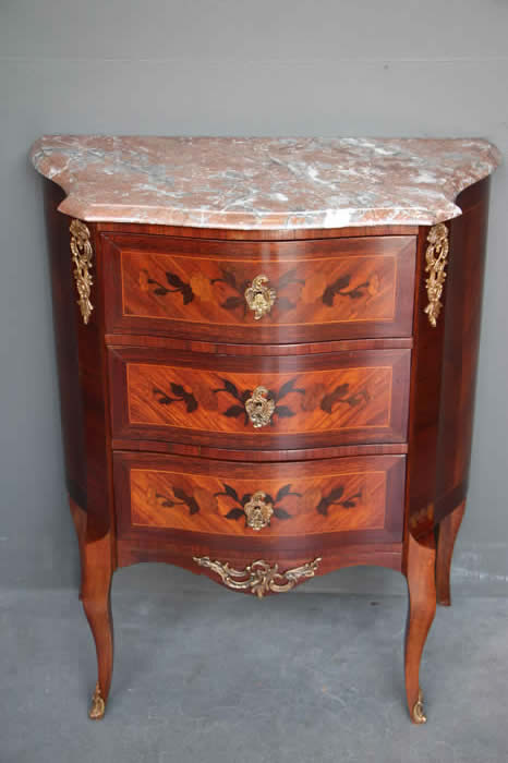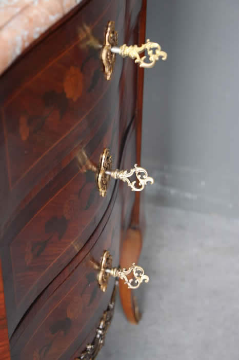 | Title French marquetry chest of 3 drawers serpentine front with marble top rococo
