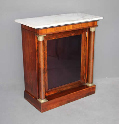 Title    English Regency pier cabinet bookcase in Brazilian rosewood with ormolu columns and marble top 1815