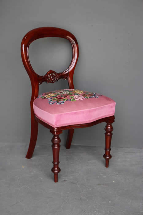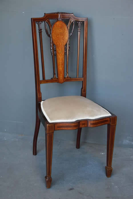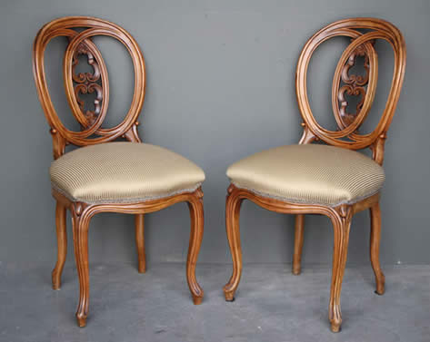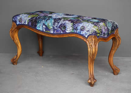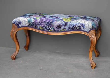 The seats in duck egg blue silk but unfortunately with minor water marks to fabric due to a faulty shipping container seal. All seats were reupholstered around 10 year sago and can be used as is or simply covered with loose tie back fabric.