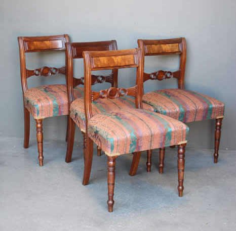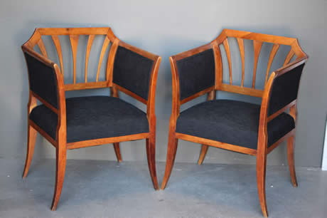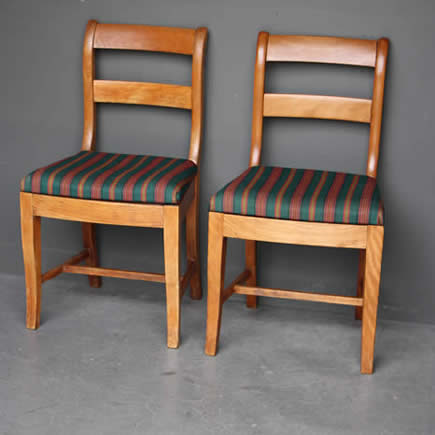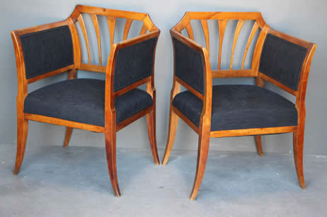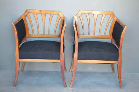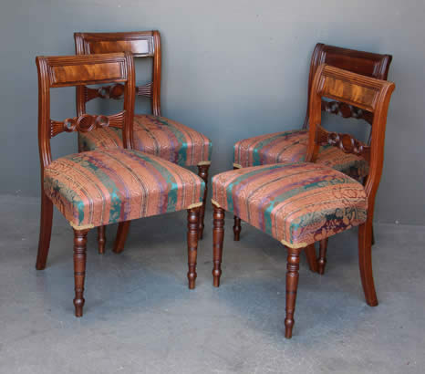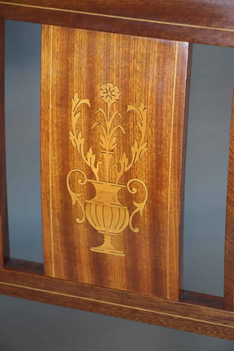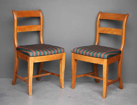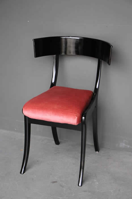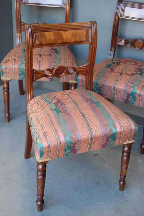 The well carved wooden chair frames with traditional pegged joint construction as used in the 18th century tradition. The four peg securing of the legs to the frame was traditional to George Jacob.