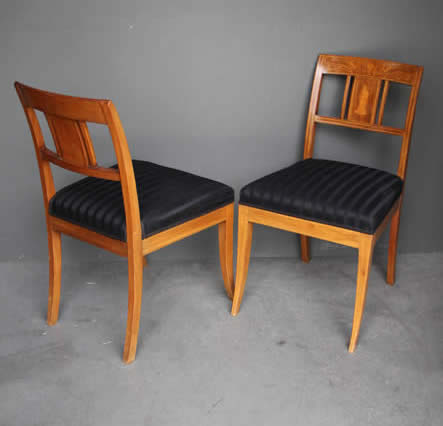 in the Empire Biedermeier manner with satinwood string inlay. The drop on seats