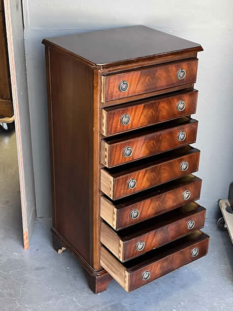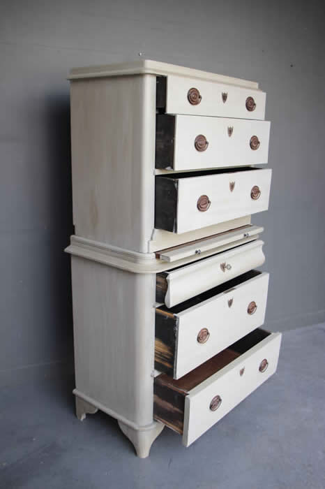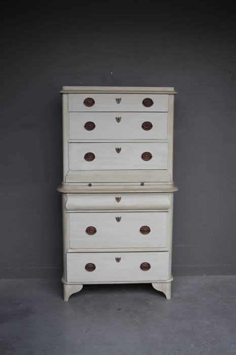 the top drawer is fitted with drop down front and lots of internal drawers ideal for jewellery watches and other treasures.