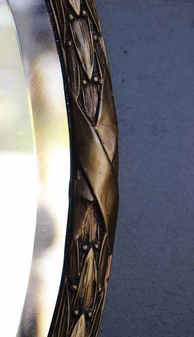 Title  Renaissance brass repousse wall MIRROR with original silvered bevel edge mirror glass 1880's