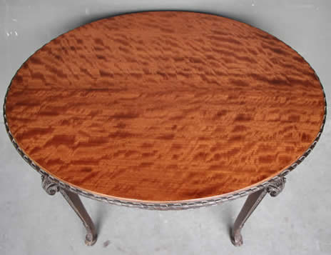 | Title English solid satinwood oval Sutherland centre table with drop sides and butterfly hinge support legs 1860 | |
