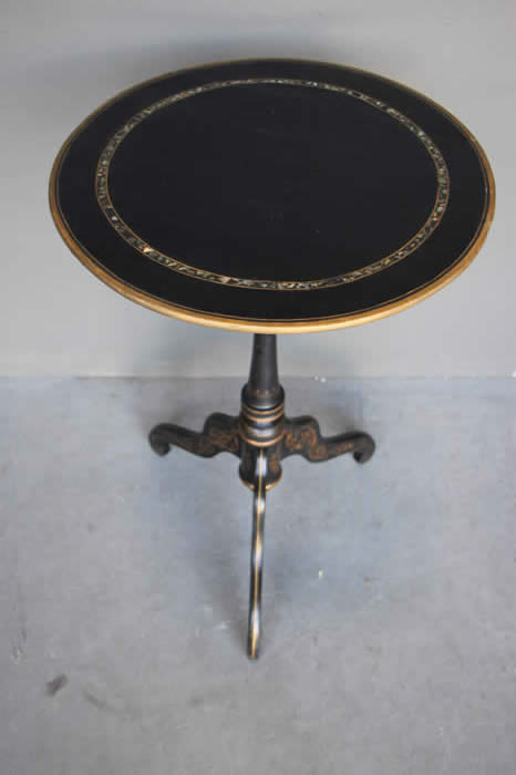 Description: raised on a turned colum with shaped Georgian legs. The gorgeous black ebony finish will allow this table to suit many interiors even Art Deco or mid century modern.