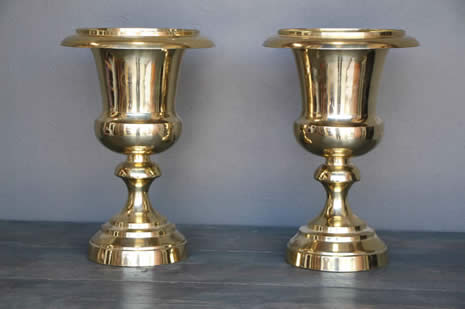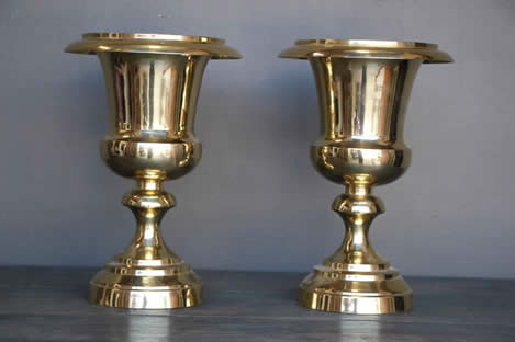 Title    Pair large polished brass urns neoclassic style solid brass campagna shaped vases in excellent condition
